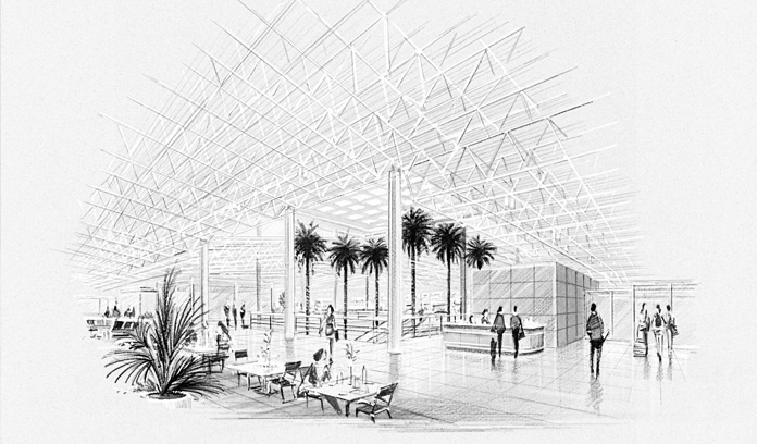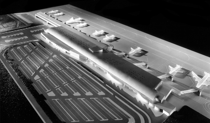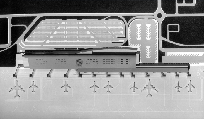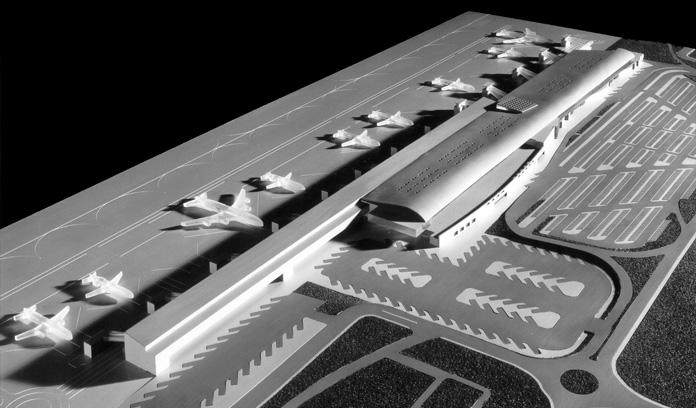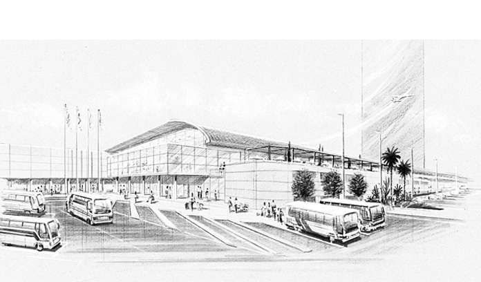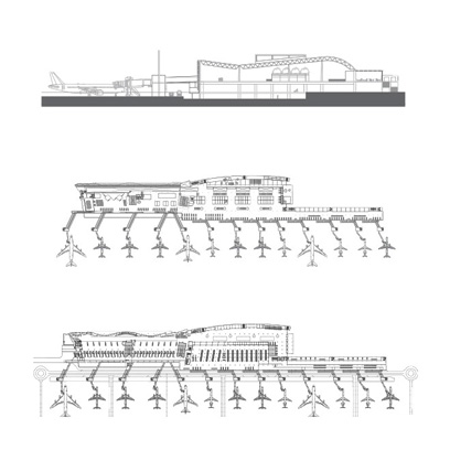 Acorde con la funcionalidad requerida se desarrolla el edificio de forma lineal continuando el existente, repitiendo el ritmo de la estructura y la envolvente prolongando los niveles de los pisos sobre la plataforma. La optimización de los itinerarios de los pasajero y equipajes, el aprovechamiento de la luz natural, la eficiencia energética y la sostenibilidad fueron determinantes en el diseño de la ampliación..