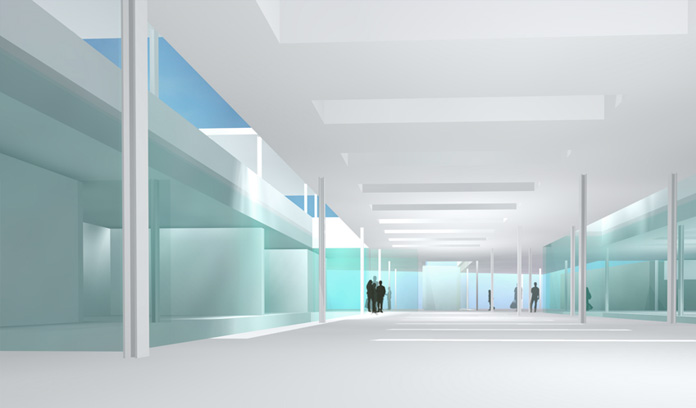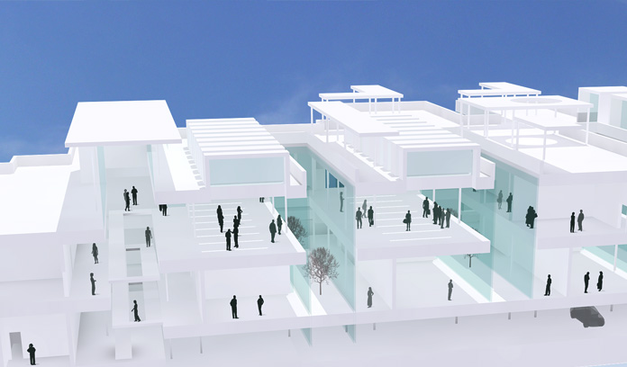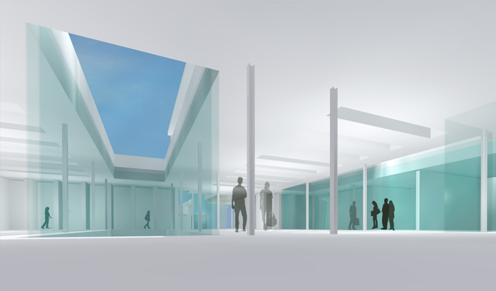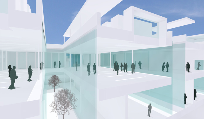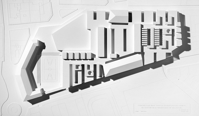 Se rehabilitan edificaciones existentes y se crean volúmenes para el nuevo campus universitario que se intercalan con patios que iluminan los espacios docentes optimizando la luz natural y la eficiencia energética. En el interior, el vidrio se emplea como elemento de compartimentación de recintos creando una amplia profundidad y sensación de transparencia a semejanza de la amplitud de miras que debe guiar el conocimiento.