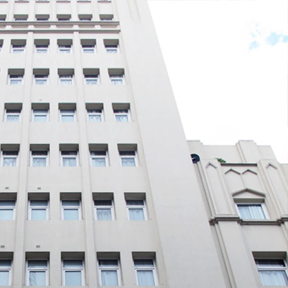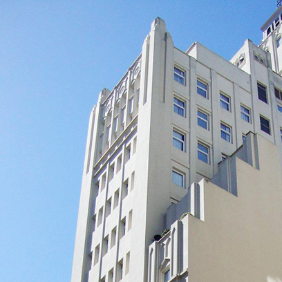 Exteriormente se preservaron las señas de identidad, recuperando los acabados originales de este edificio, inspirado en los rascacielos neoclásicos americanos.
