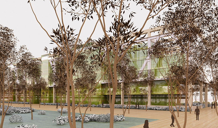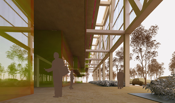 fachada a la autovía de Toledo, creándose un espacio