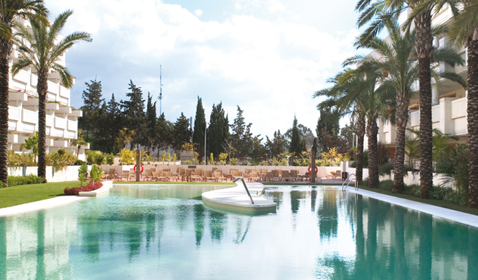 En la mítica milla de oro de Marbella, el lujoso resort con centro wellness, restaurantes, tiendas exclusivas y hotel, se compone de tres edificios relacionados a través de sus jardines exteriores. El bulevar de palmeras junto a los caminos de los jardines sirven de conexión y constituyen ese tapiz verde sobre el cual se disponen los diferentes volúmenes.