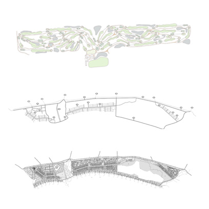 Las propuestas aseguran una permeabilidad entre el territorio interior y la orilla mediante la implantación esponjada y abierta de los núcleos de edificación compaginando el tráfico rodado con el peatonal.