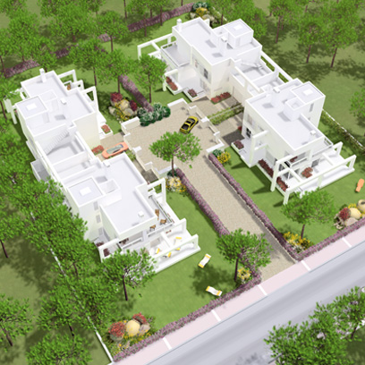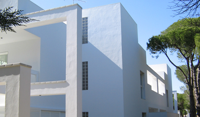 Cuatro viviendas se implantan en el pinar mediterráneo de Cabo Roche respetando el arbolado existente, y con un diseño con raíces en la arquitectura vernácula.