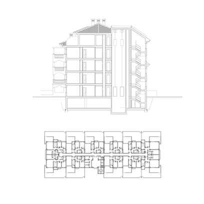 Las edificaciones adoptan aspectos de lenguaje arquitectónico local que se manifiestan en los revocos exteriores en colores blanco y albero, así como en el diseño de los balcones, aleros y cubiertas a cuatro aguas..